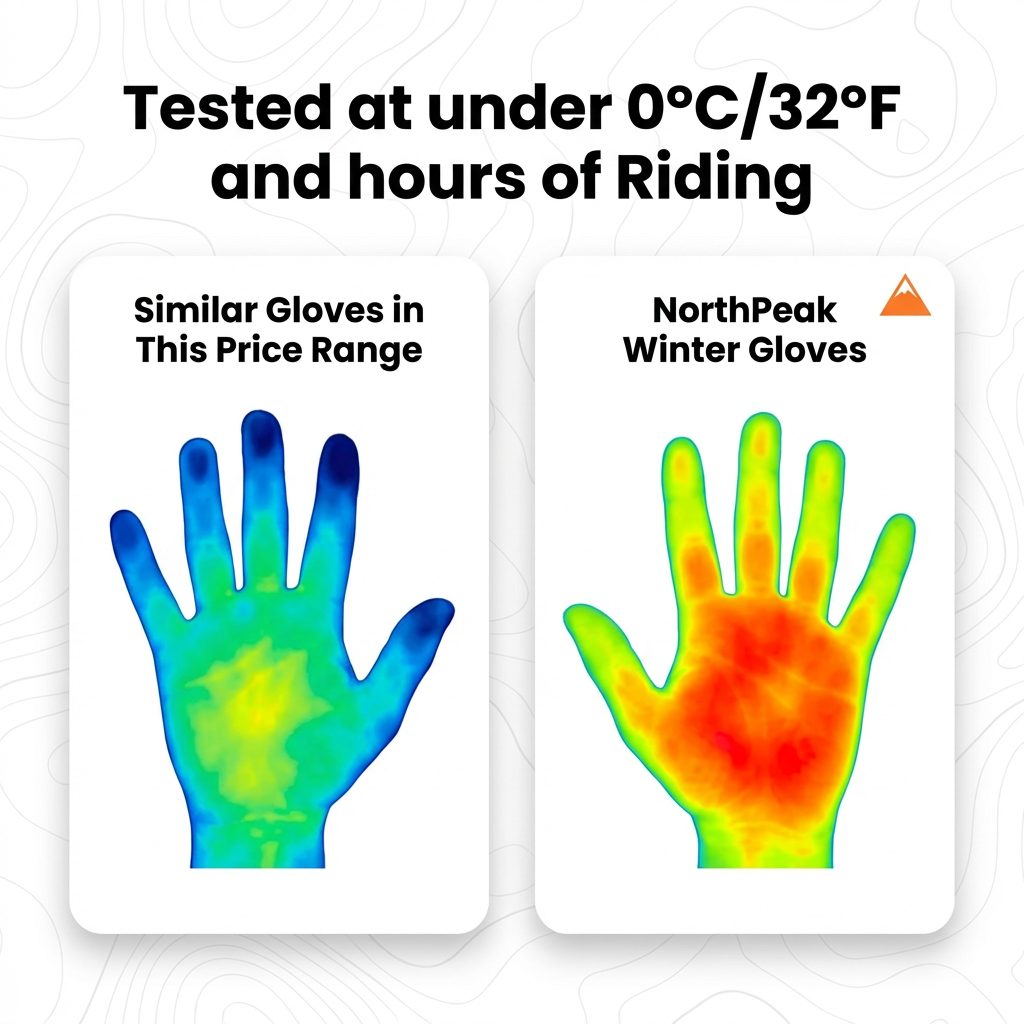 North Peak gloves are tested by people whose jobs depend on their hands. Construction foremen managing 10-hour shifts. Delivery drivers in and out of vehicles 150 times per day. Winter cyclists riding 90 minutes daily in freezing rain.
